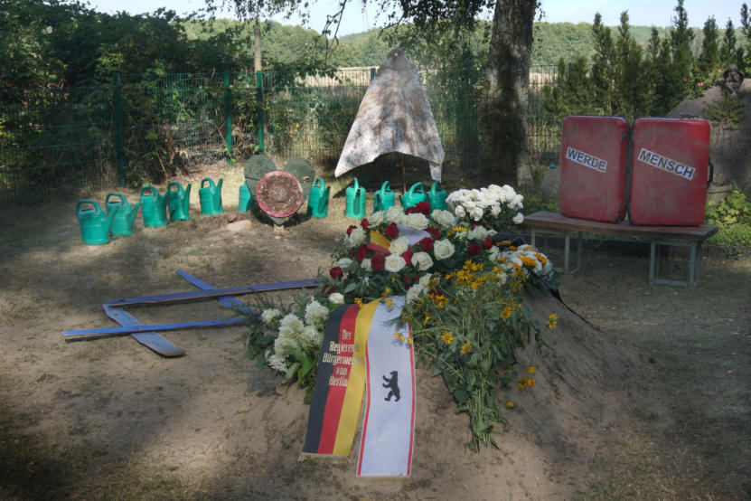 1933 – 1938 – 1945Diese drei Jahreszahlen hatten auch fürBen Wagin´s künstlerisches Schaffen eine herausragende Bedeutung. So widmete erder Neugestaltung des Weltbaum II am S-Bahnhof Savignyplatz dieser Zahlen-gruppe. Auch entstanden Gehwegplattenmit dieser Botschaft. Eine dieser Plattenbefindet sich direkt neben dem Kolonnen-weg. Eine weitere am S-Bahnhof Savignyplatz.Zur der Wandgestaltung am S-BahnhofSavignyplatz läuft zur Zeit eine Ausstellungin der Galerie an der Ladestraßevon Ben Wagin.Geöffnet am Samstag von 13 – 17 Uhr.Der Eintritt ist frei.Mehr Informationen weiter unter.